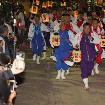 薄暗い中、提灯の明かりと共にかき手が一斉に社殿に走りこんでいく様子は、当社独特の勇壮で幻想的な雰囲気があります。