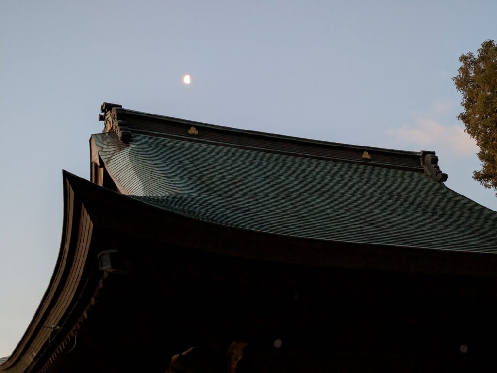 朝日に照らされる神門。その奥には、まだ空に残る月の光がありました。 夜と朝のあわいのひととき。静かな境内に、澄んだ空気と一日のはじまりを感じます。 今日も穏やかな一日となりますように。 -