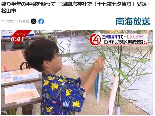 7月1日~8月31日まで行っている夏詣についてテレビに取り上げられました。 あいにくの雨でしたが「十七夜七夕祭」の様子が、取り上げられ伊予里神楽やおかしまき、短冊など、当日のにぎわいや参拝の風景をご紹介いただいています。 お越しくださった... -