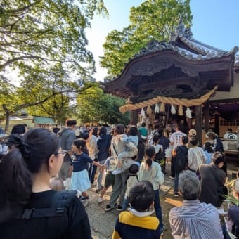 橘若宮神社の秋祭りに合わせて伊予里神楽を奉納致しました。宮司さんが代替わりして、初めての秋祭りです。今年はお神輿が出ないそうで残念ですが、そのかわりに大魔(だいま)に抱っこしてもらおうと、多くのお子様連れがお参りに来ていました。次は来年...