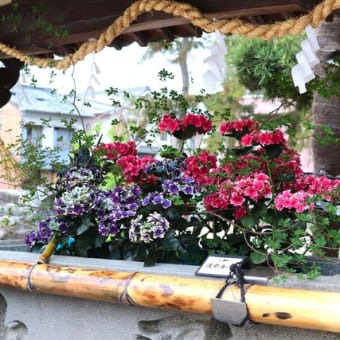 天満宮の花手水、夏の彩りに