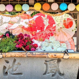 天満宮の花手水が、夏の彩りへと姿を変えました。色鮮やかな提灯の下、ほおずきの朱と白い花が涼やかに揺れ、境内に訪れる方々を優しく迎えます。 夏詣での折に、どうぞ足をとめてご覧ください。 -