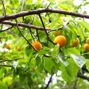 境内の梅の実が、今年もぷっくりと色づいてきました。