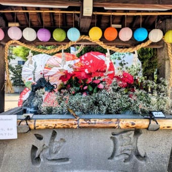 手水舎を夏詣仕様にしました。色鮮やかな和傘と夏の花々が彩る、涼やかな手水舎です🎐お参りの際は、ここで心もリフレッシュしてくださいね💧この時期だけの特別な景色を、ぜひ見に来てください🌿※6月28日からは「夏越祭仕様」に模様替え予定です。