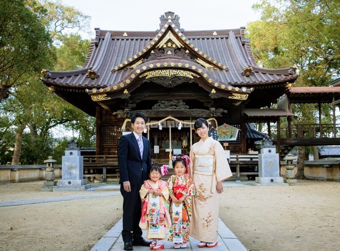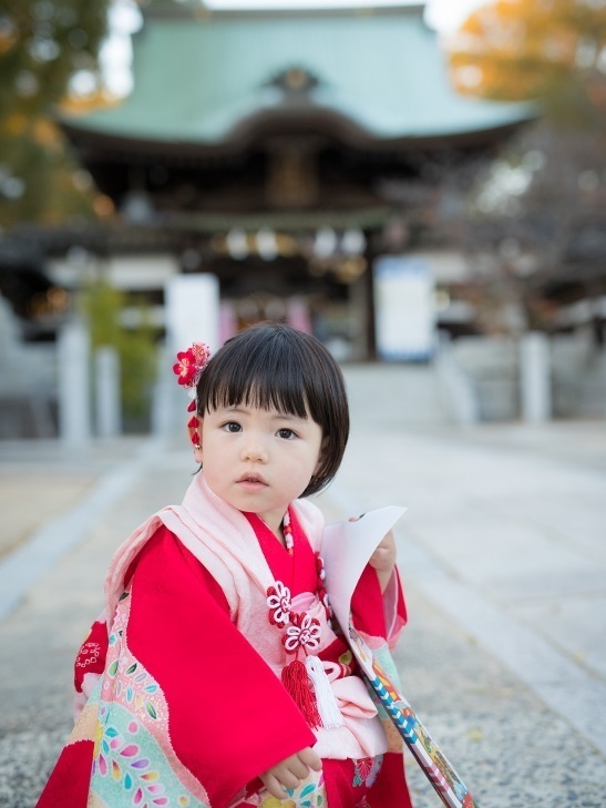 社殿のすぐ前で撮影する方が多いのですが、写真館の方は離れて撮影されることが多いようです。社殿全体が写って綺麗に撮れます。